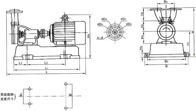 【不銹鋼防爆旋渦泵W型】安裝尺寸圖: