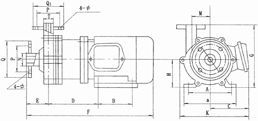 CQF型工程塑料磁力驅(qū)動(dòng)泵安裝尺寸圖:
