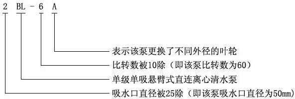 臥式單級(jí)清水離心泵型號(hào)意義: