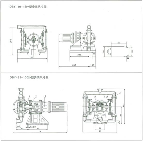 【不銹鋼電動(dòng)隔膜泵DBY型】安裝尺寸: