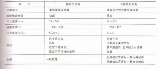 推壓型密封盒非推壓型密封特點(diǎn)的比較見表1-11.