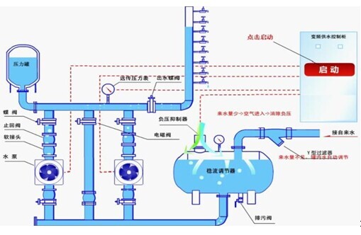 因此,在領(lǐng)域中“無(wú)負(fù)壓”是指利用科學(xué)的技術(shù)和措施,消除水泵運(yùn)行時(shí)對(duì)其直接串接的供水管網(wǎng)的影響,不使其供水管網(wǎng)產(chǎn)生負(fù)壓,不影響附近用戶的用水,不污染水質(zhì),從而保護(hù)了與供水管網(wǎng)直接串接的供水安全和水質(zhì)衛(wèi)生。
