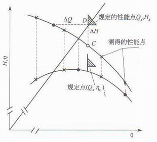 如果規(guī)定點(diǎn)與試驗(yàn)曲線的垂直距離離為士△Η,水平距離為士△Q(圖4-24),則應(yīng)算出下列值: